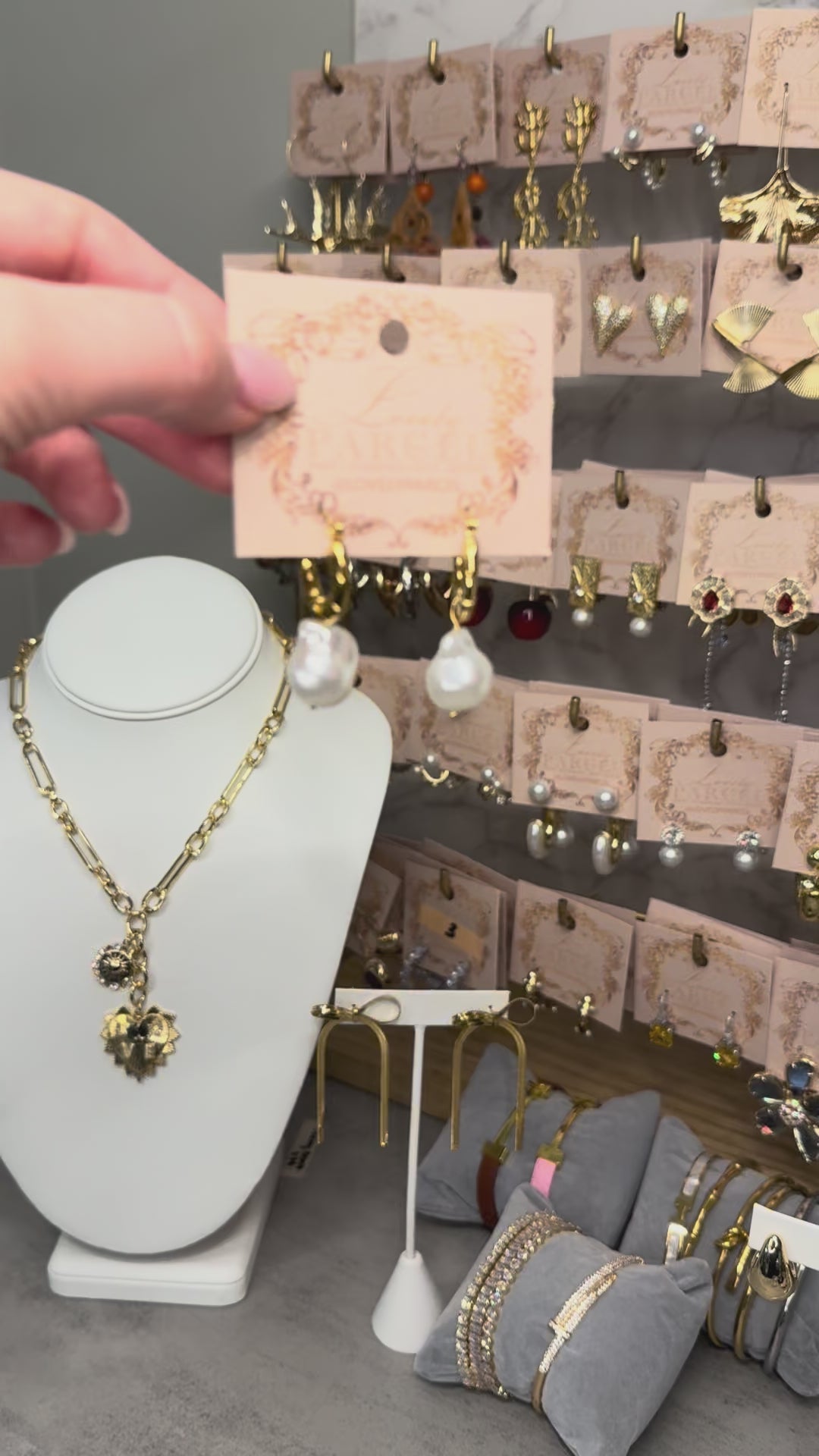 Pearl gold hoop earrings.