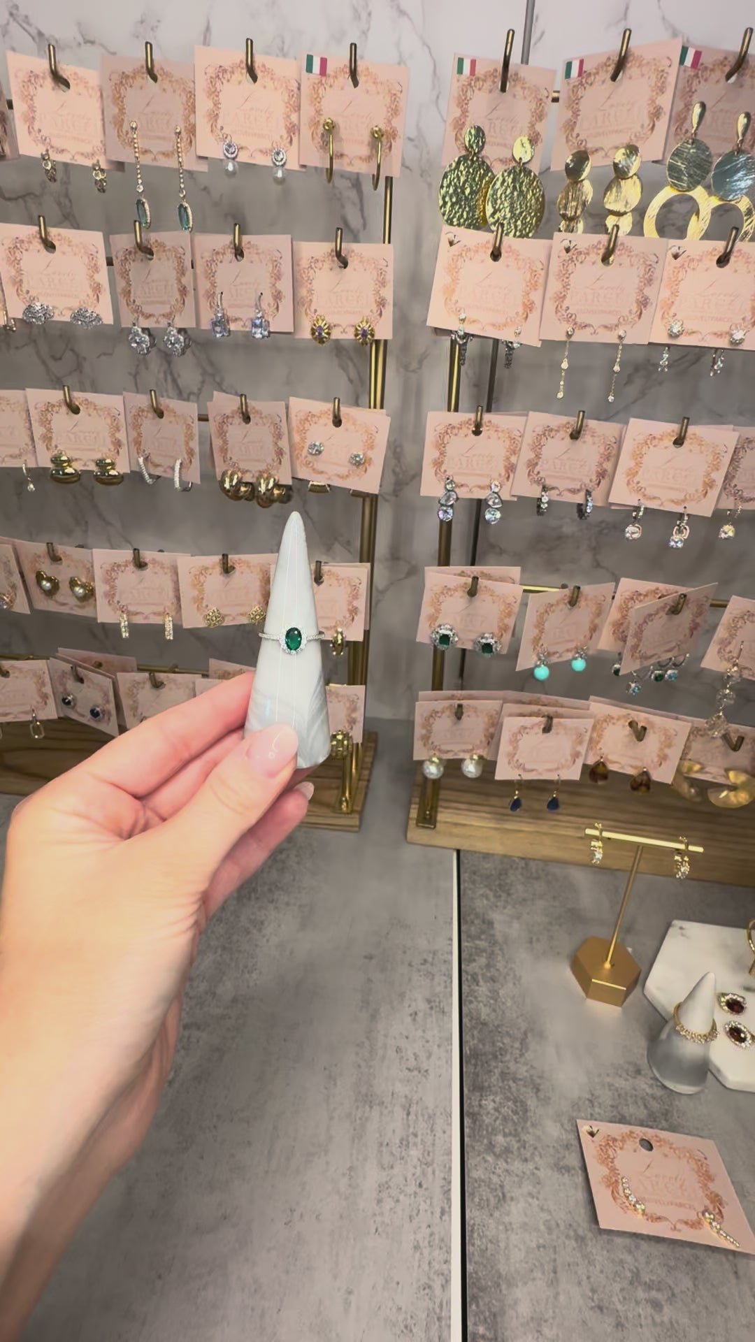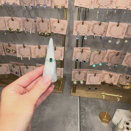 Color: Emerald Green center stone with CZ Diamond-like accent stones.