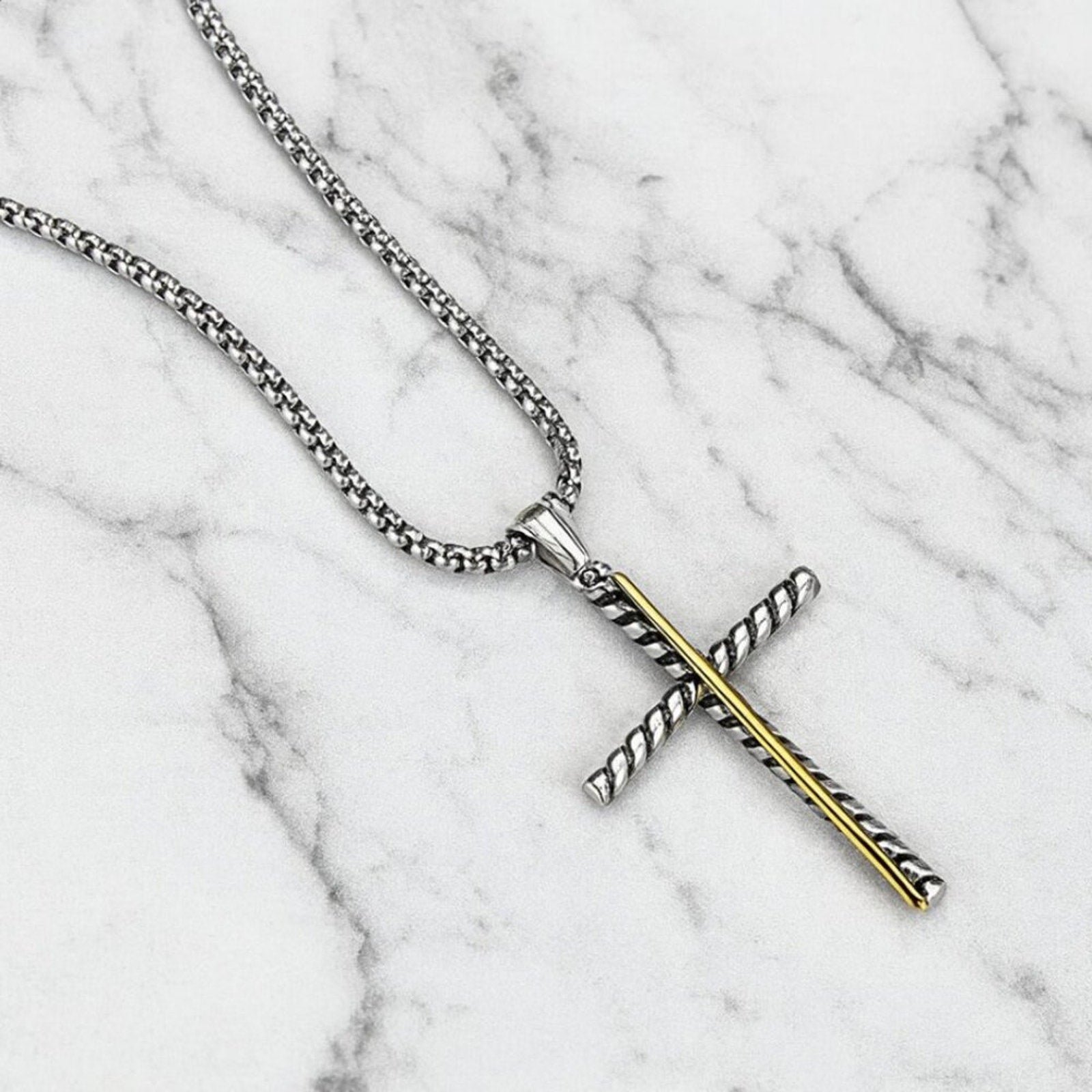 "Genesis" Unisex Mixed Metal Cross Necklace