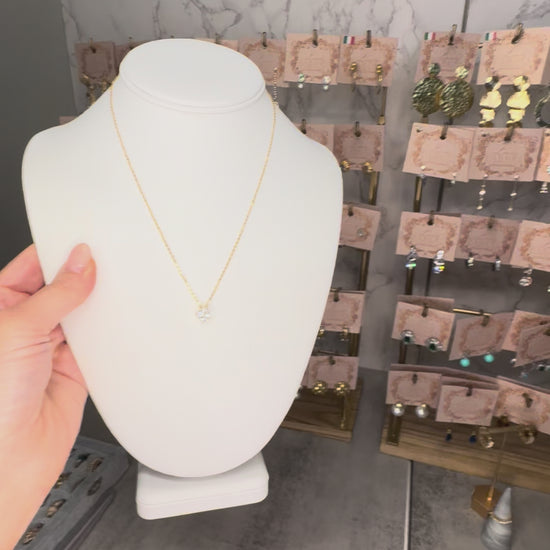In the shape of a flower. Dainty necklace. Petite clover. Diamond Necklaces.