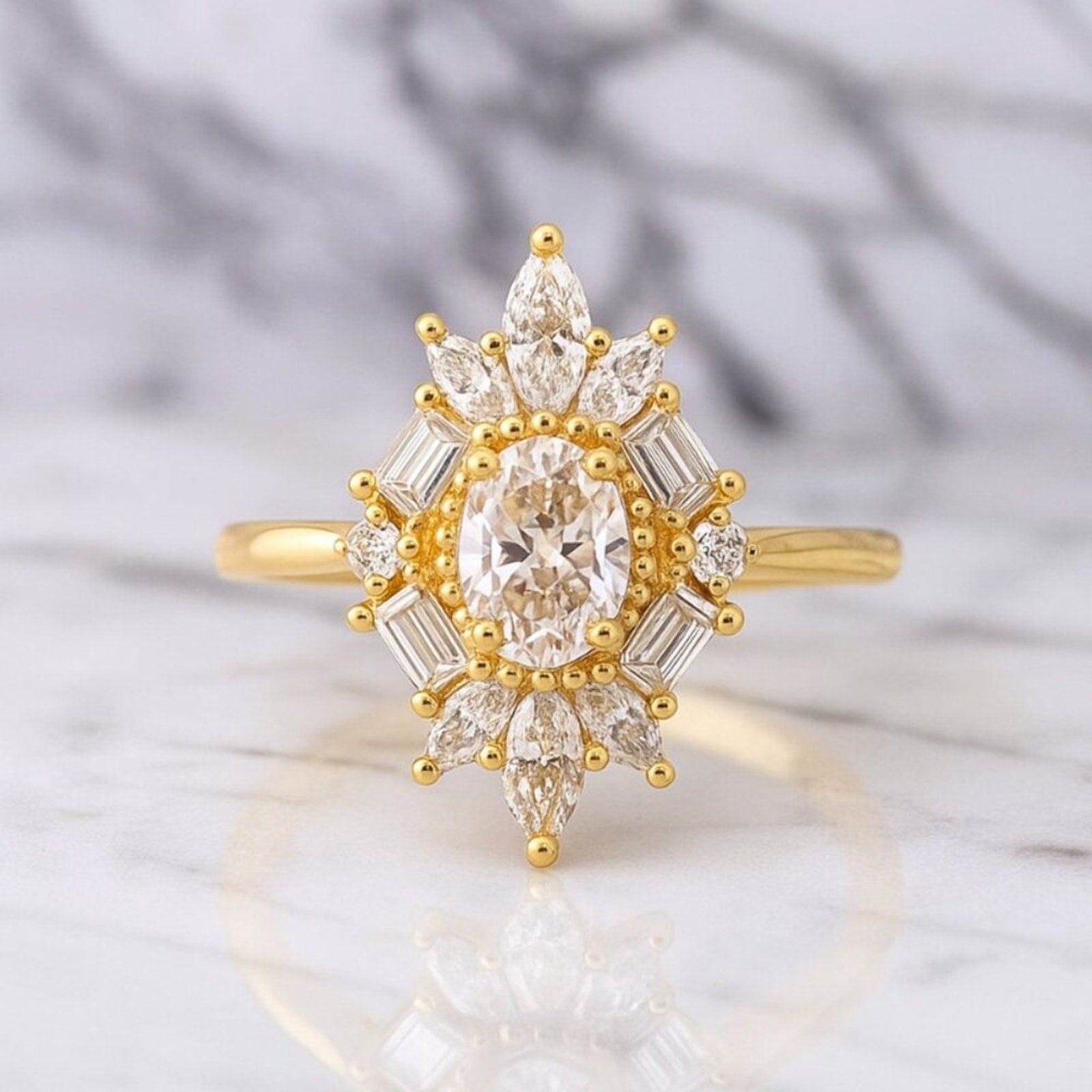 Stunning vintage style Moissanite Lab Diamond Ring.